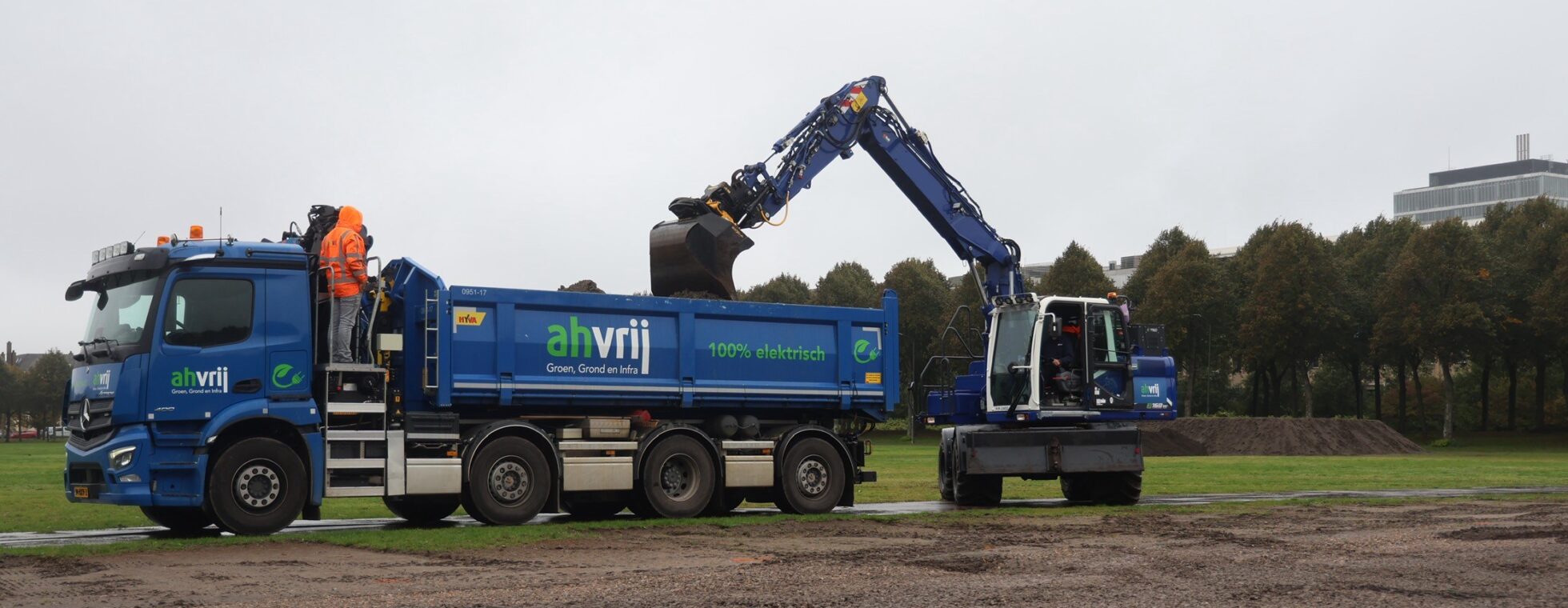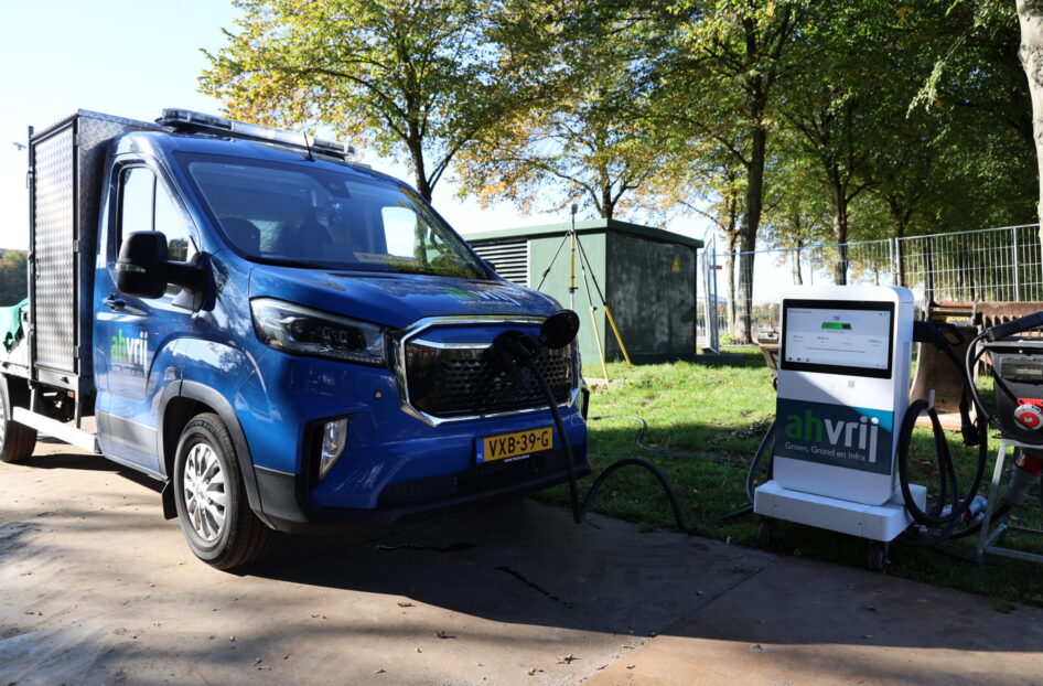 Niet alles kan al elektrisch. Eindhoven: ‘Voor vrachtwagens en graafmachines is de markt ver ontwikkeld, maar veel van de beschikbare tractoren houden het maar drie tot vier uur vol. Met de tijdsdruk die hier speelt, is dat niet werkbaar. Daarom gebruiken we voor een deel nog dieseltractoren, maar wel met de schoonste Stage 5-motoren en HVO100-brandstof.’