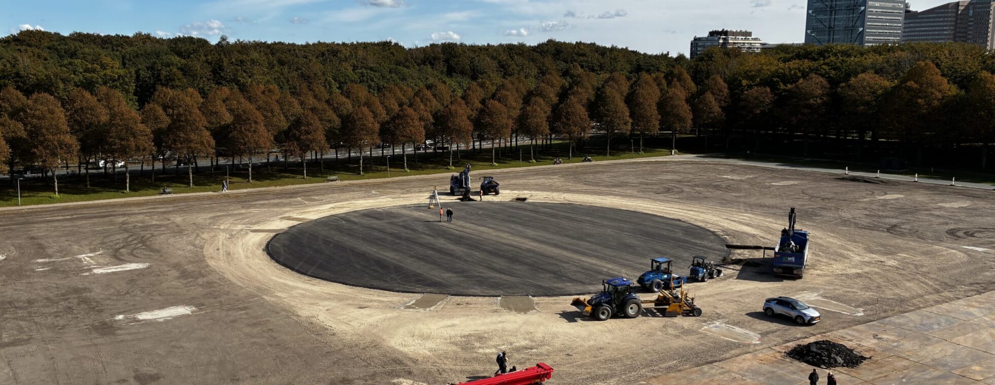 AH Vrij Groen, Grond en Infra B.V. onderhoudt al jaren de grasmat van het Malieveld in opdracht van eigenaar Staatsbosbeheer. Ook met de komst van Cirque du Soleil zorgt het bedrijf voor zowel de voorbereiding als het herstel. Grote vraag: hoe kunnen deze werkzaamheden met zo min mogelijk milieubelasting plaatsvinden? ‘Bij het vorige evenement van Cirque du Soleil in 2019 werd nog 30 centimeter gebroken puin aangebracht als funderingslaag voor de tent,’ vertelt uitvoerder Mark Snijders. ‘Een optie die wegens aangescherpte wetgeving rondom milieubelasting nu niet meer wenselijk was.’