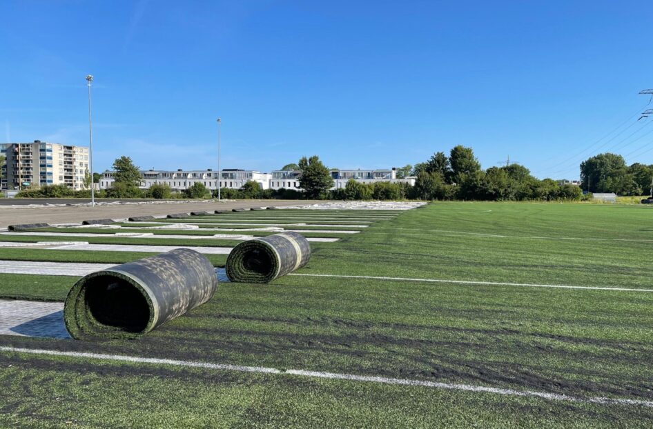 Netjes binnen de krappe deadline van 5 augustus werd de sanering afgerond en eind september waren alle kunstgrasvelden op de thuisbasis van Vitesse Delft en v.v. SEP weer speelklaar.